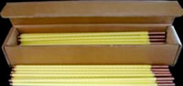 Диаметр электродов: 1/8", 5/32" или 3/16" (3.2, 4.0 или 4.8 мм). Длина электродов – 14” (355 мм). Электроды поставляются в коробках весом 4.5 кг, в коробке приблизительно 110 электродов диаметром 1/8", 80 электродов диаметром 5/32", 50 электродов диаметром 3/16".